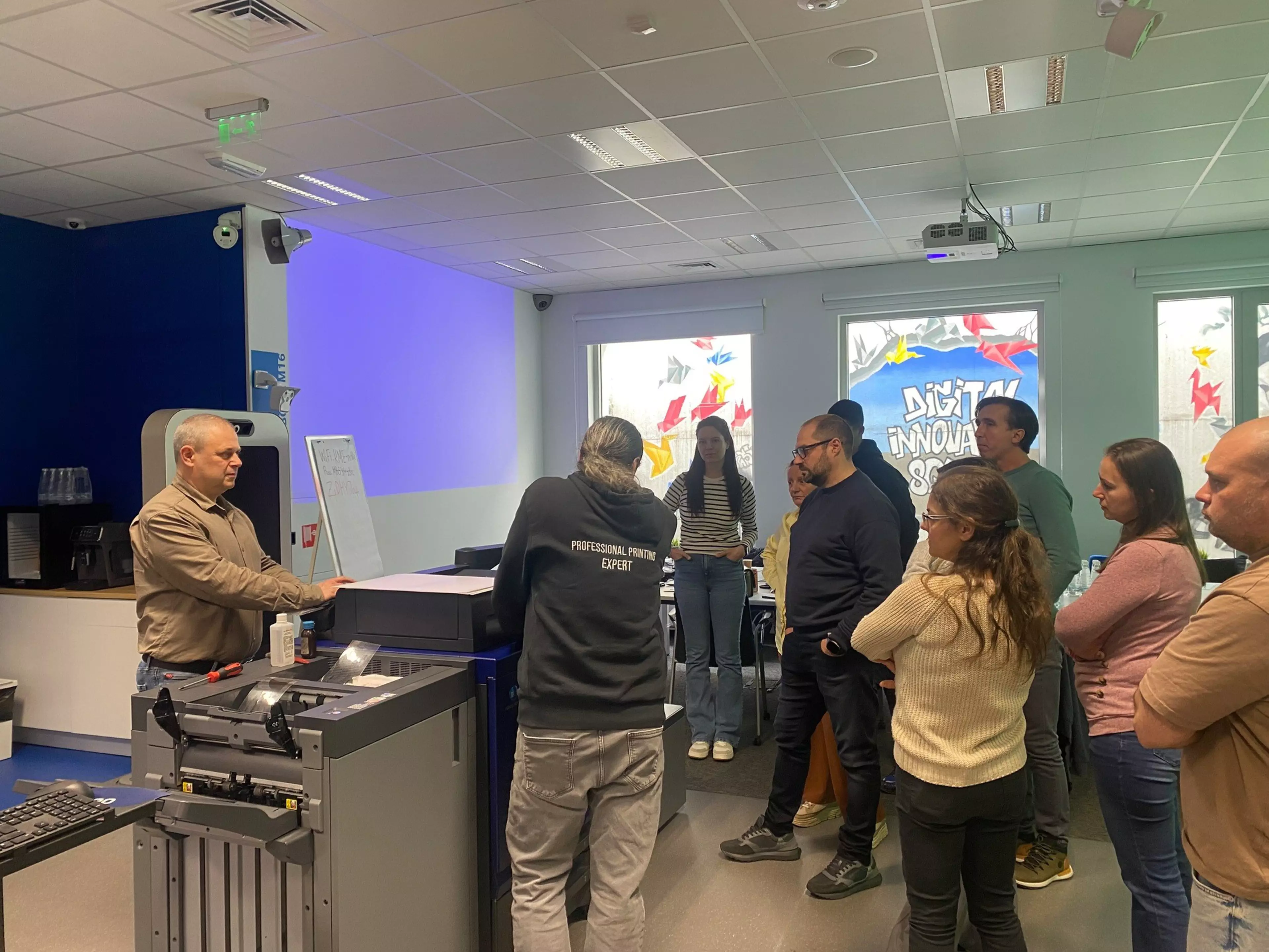 Обучението беше водено от Благовест Димитров, ръководител на техническия екип „Производствен и индустриален печат“, и Кирил Костадинов, DIS оператор, с участието и на Йоан Георгиев, тийм лидер „Производствен и индустриален печат“. Опитът им и познаването на машините и технологиите помогна обучението да бъде максимално конкретно и насочено към реалната работа на операторите.