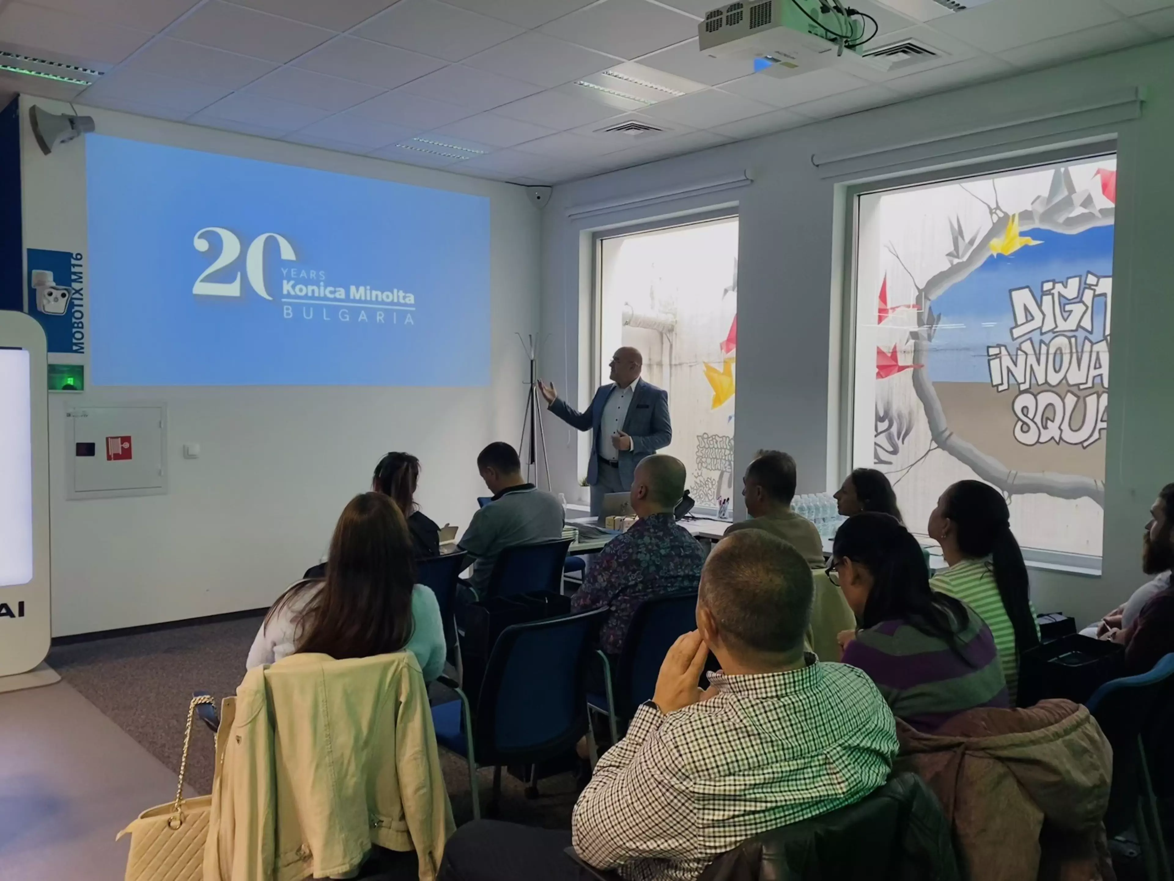 Официалното откриване направи Йоан Георгиев, Мениджър Бизнес развитие „Индустриален печат“ в Коника Минолта България. В кратката си презентация той отбеляза значимостта на годината, в която Коника Минолта България навършва 20 години присъствие на българския пазар – период, през който компанията последователно утвърждава позициите си като надежден партньор и иноватор в различни бизнес направления. Георгиев постави акцент и върху 20-годишната история на производствения печат на Konica Minolta в глобален мащаб – пример за устойчиво технологично развитие.