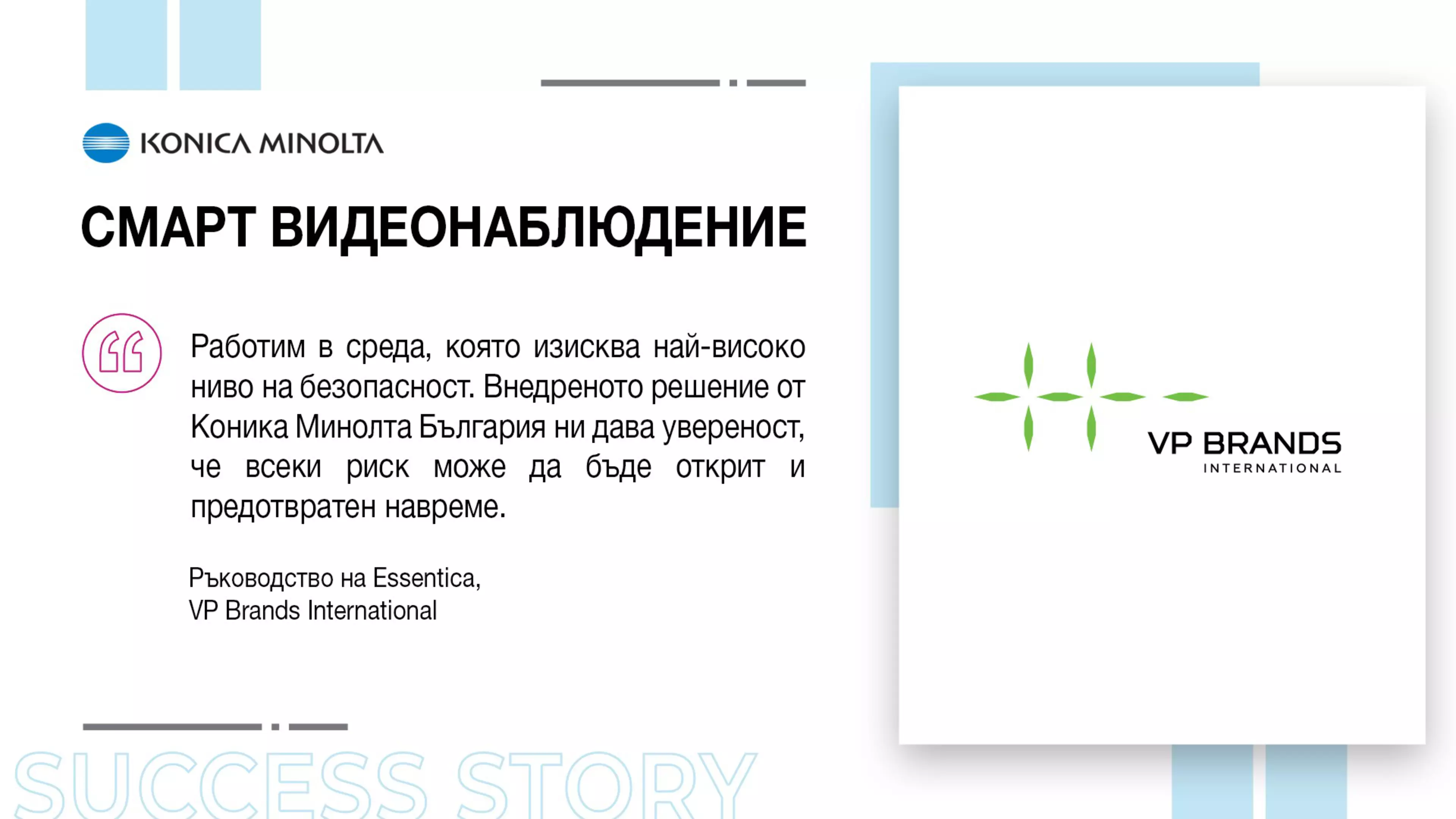 Коника Минолта България внедри интегрирана система за термално видеонаблюдение, която съчетава високоточни терморадиометрични камери, автоматизирано насочване на PTZ устройства и централизирано управление през единна софтуерна платформа. Термалните камери измерват абсолютната температура във всеки пиксел на изображението и откриват минимални отклонения, които могат да бъдат ранни признаци за риск. Те са монтирани на шестнадесет метра височина, което позволява обхващане на големи площи и надежден контрол върху всички ключови зони.