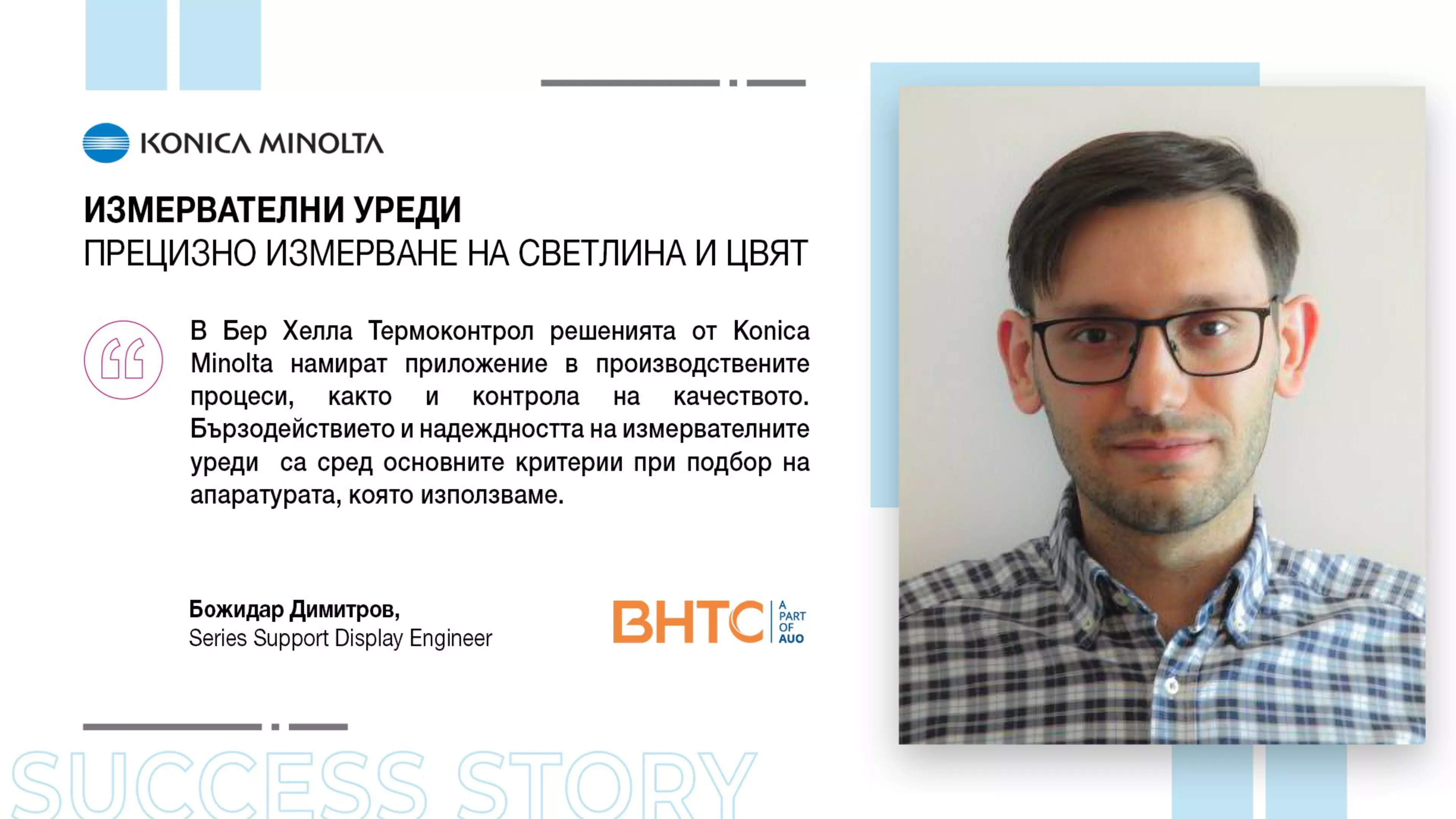 БХТС България ЕООД е част от BHTC Group – един от водещите световни доставчици на решения за контрол и управление на климатизацията в автомобилите, а от 2013 г. БХТС България развива производствено предприятие и развоен център за контролни панели за автомобилни климатични системи. Днес в компанията работят над 650 специалисти, а екипът продължава да се разраства. В това интервю разговаряме с Божидар Димитров, Series Support Display Engineer, за ролята на прецизните измервания и контрола на качеството в производството на HMI решения.